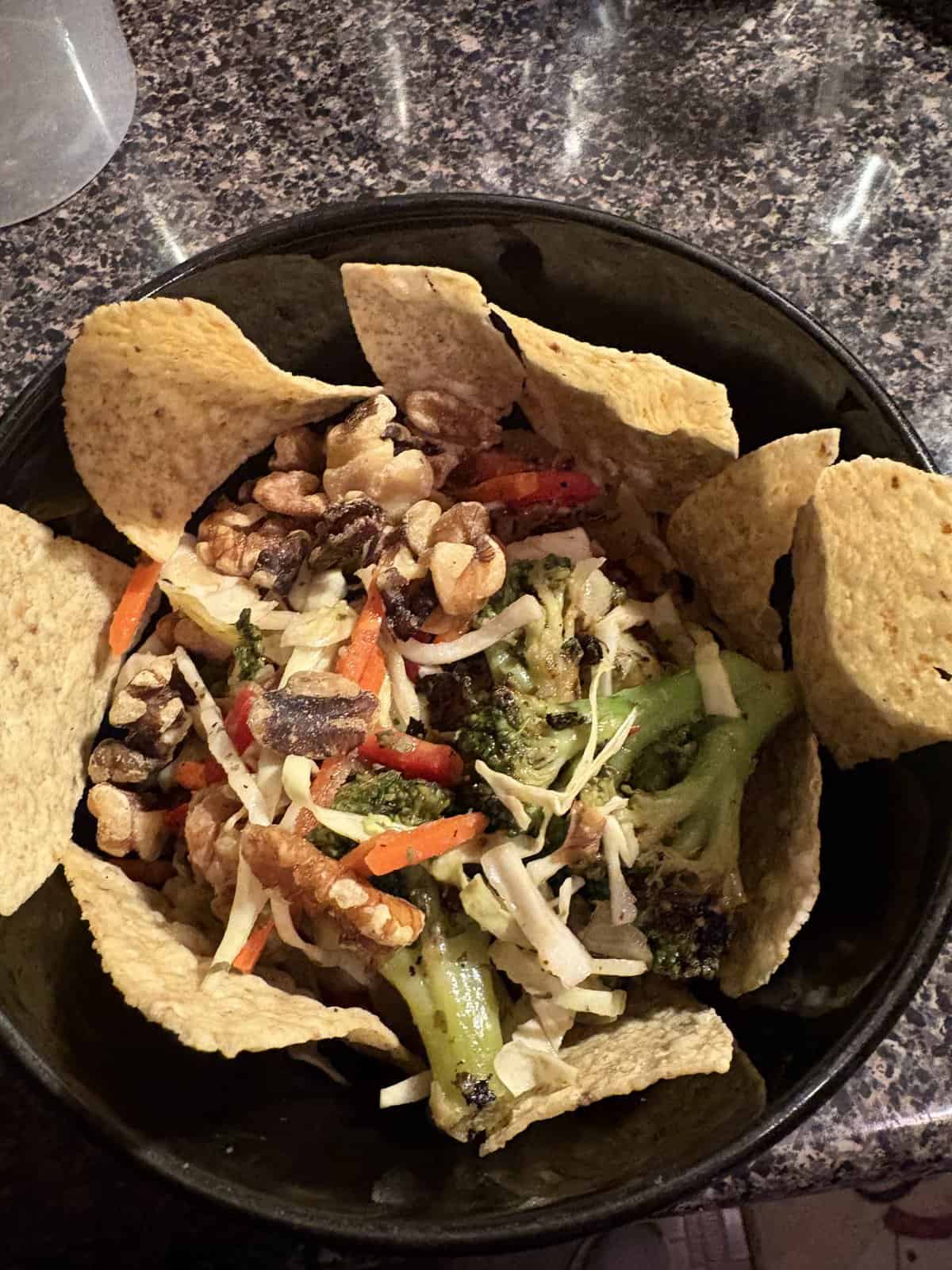 My 15 year old doesn’t like salads and usually I have to force her to eat vegetables. She absolutely loved this salad!! She wants me to make this every day. I added salted peanuts (in the picture) and pumpkin seeds for crunchiness, I also added cooked chicken for protein instead of edamame.