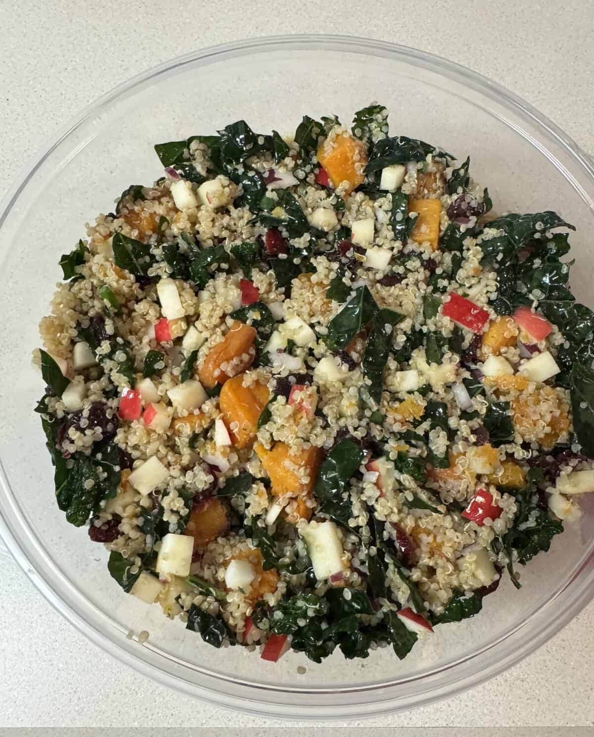 This salad eats like a glorious meal. The dressing is tangy with just a hint of sweetness. I followed the recipe including the add in’s, roasted brussel sprouts, apple and feta. Can’t wait for lunch tomorrow.