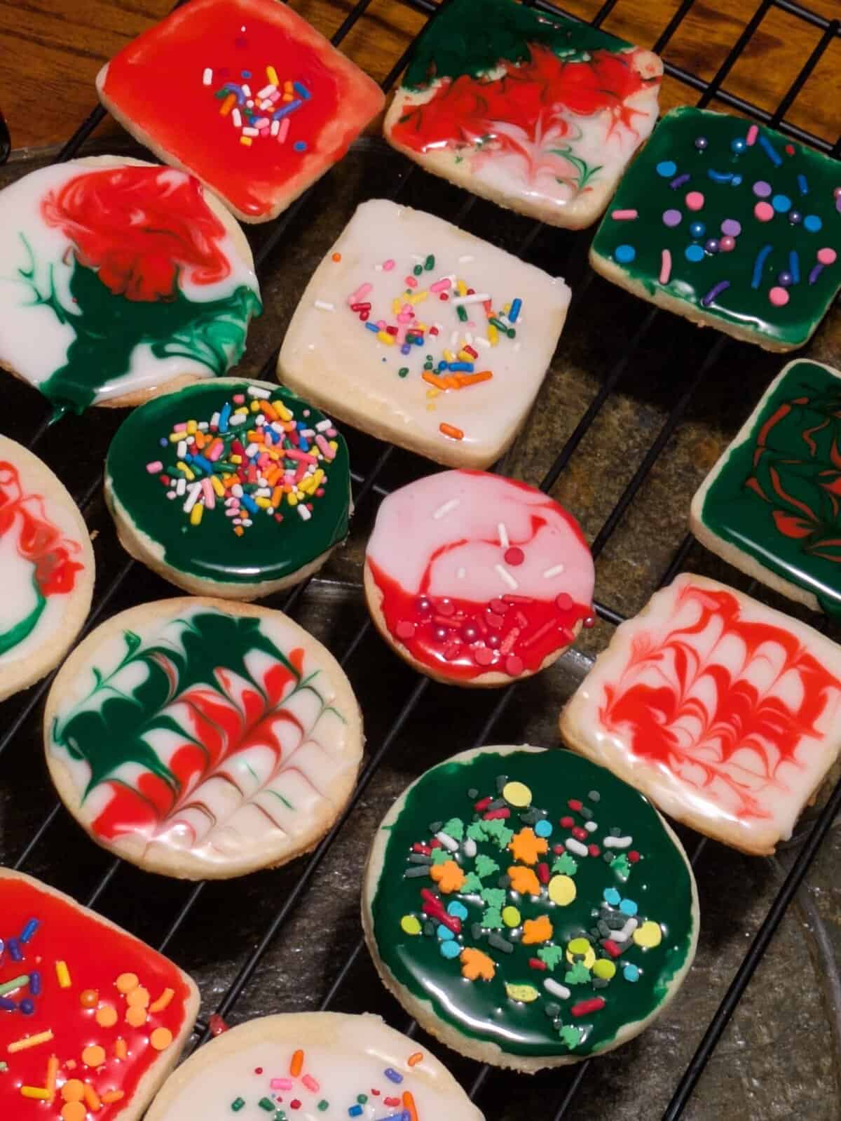 These cookies are soft and delicious, and easy to make. The frosting has a nice texture and allows you to stack cookies. As a bonus, there is a distinct almond flavor which makes this the perfect Christmas cookie recipe!
