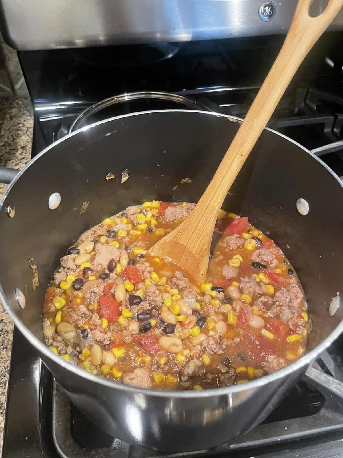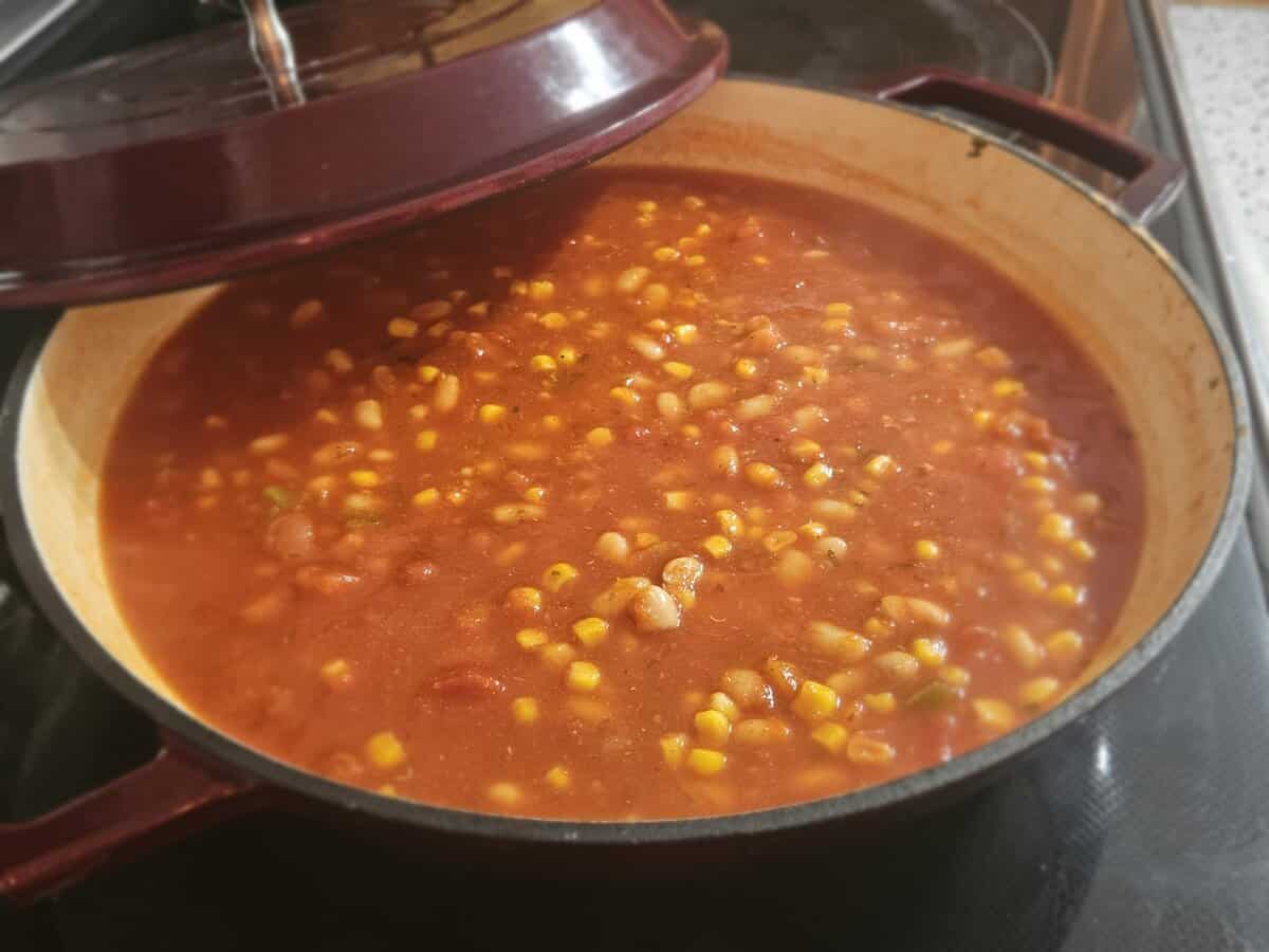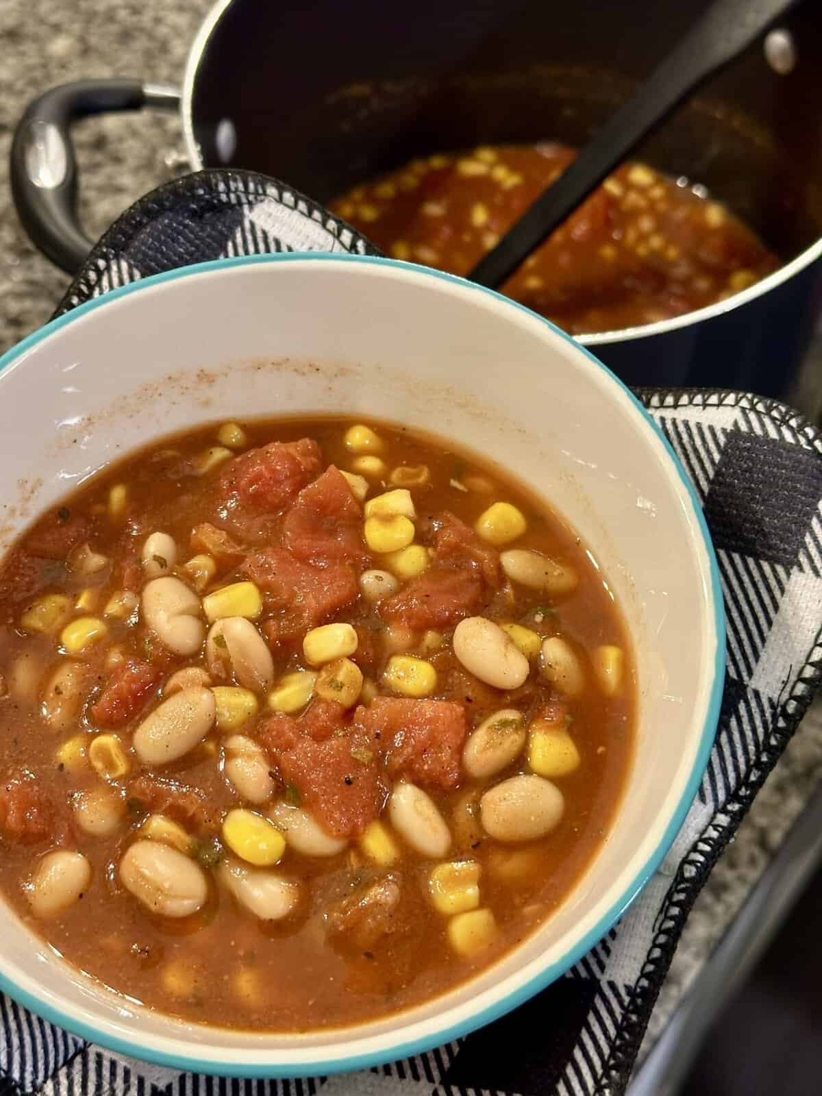 A mere read of the ingredients—white beans, corn, tomatoes, and spices—may leave you skeptical, but trust me, it is excellent!