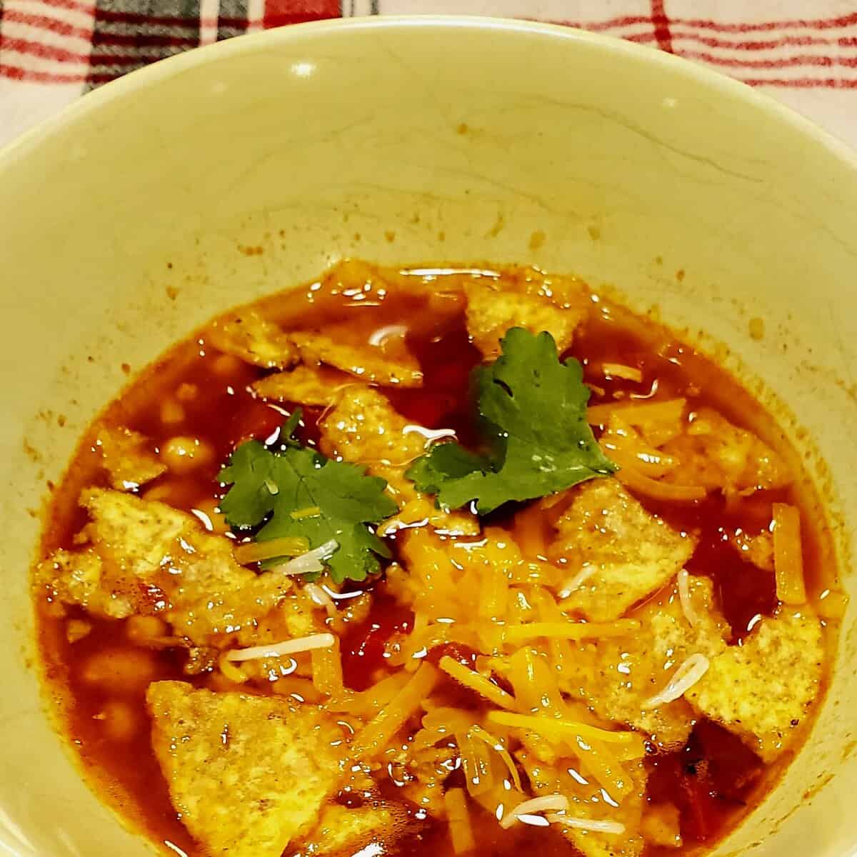 - Toppings: Crushed tortilla chips freshly grated cheese (I like sharp cheddar), sour cream or plain non-fat Greek yogurt, freshly chopped cilantro, avocado
