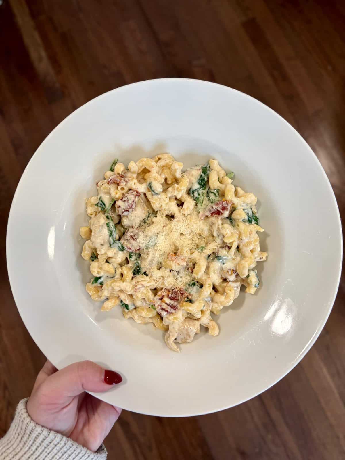 With 60 grams of protein per serving, this creamy High Protein Pasta recipe will help you crush your macro goals! A riff off of marry me chicken, it’s DELISH.
