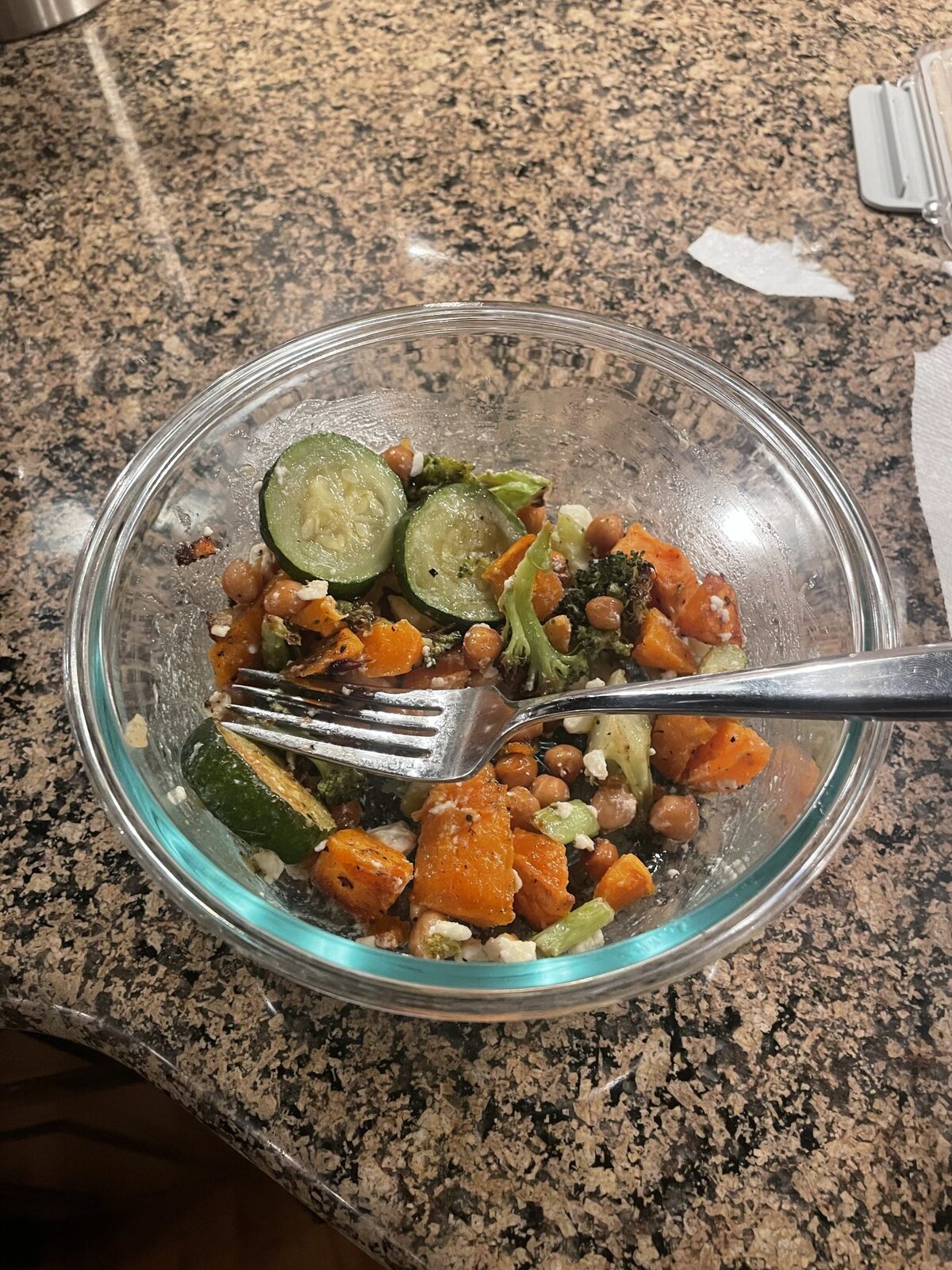 Recipe #3 from from Well Plated did not disappoint! I will be making this again! I loved the warm veggies and feta combo. The dressing brings it all together!