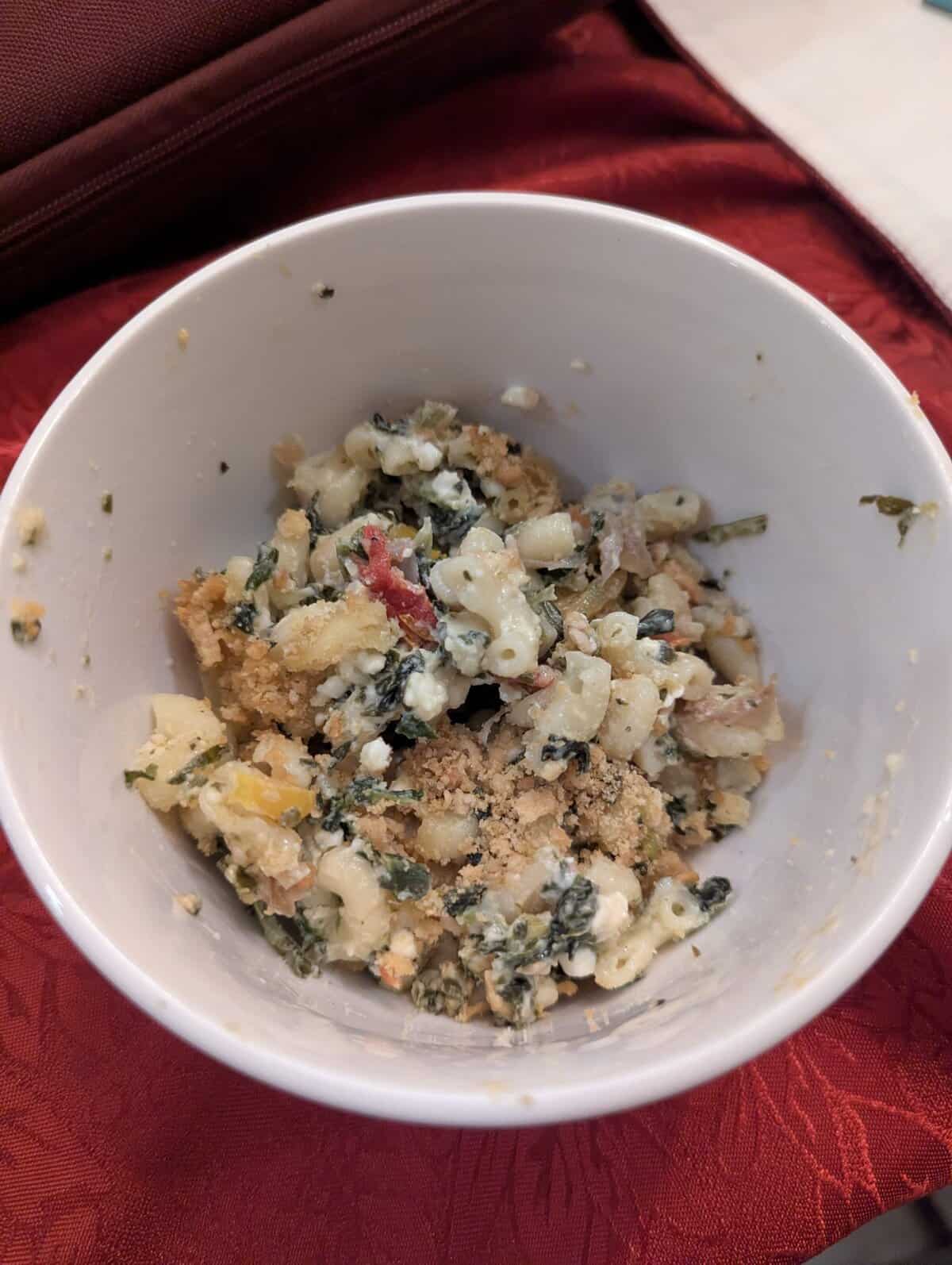 I wasn’t sure how I’d feel about Greek flavors in mac and cheese, but it actually worked. The spinach and olives added a nice salty touch, and the sauce didn’t feel heavy. My husband ate two bowls, so that’s a win
