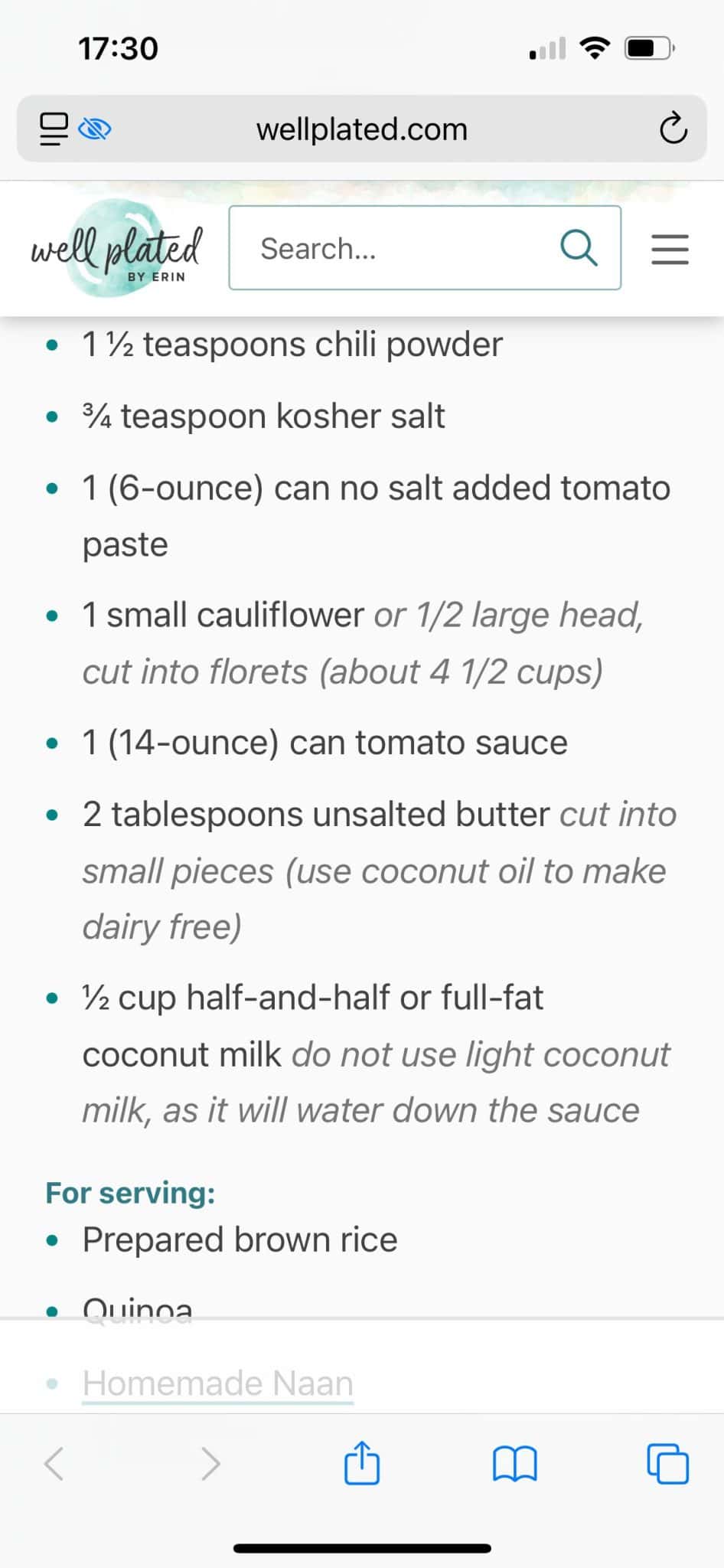 Hi K! Here is our stove top version that doesn’t include cauliflower: https://www.wellplated.com/butter-chicken/ Enjoy!